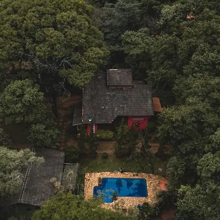 Die Villa Sitio Cores Da Mata mit Ausblick auf den Pool bietet auch einen Garten und die Gärten. Die Unterkunft hat auch 4 Schlafzimmer und 4 Badezimmer.